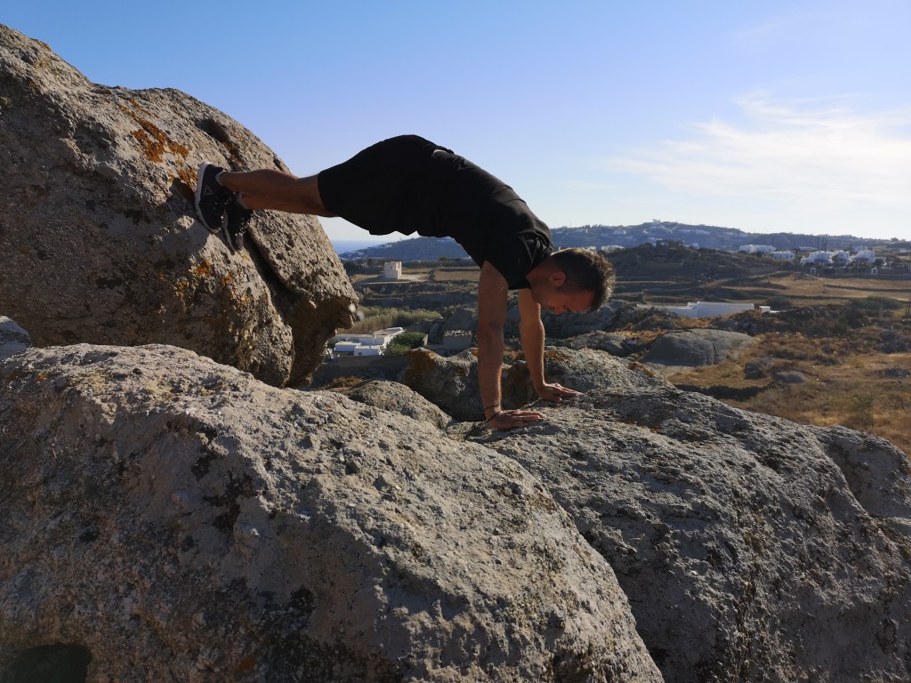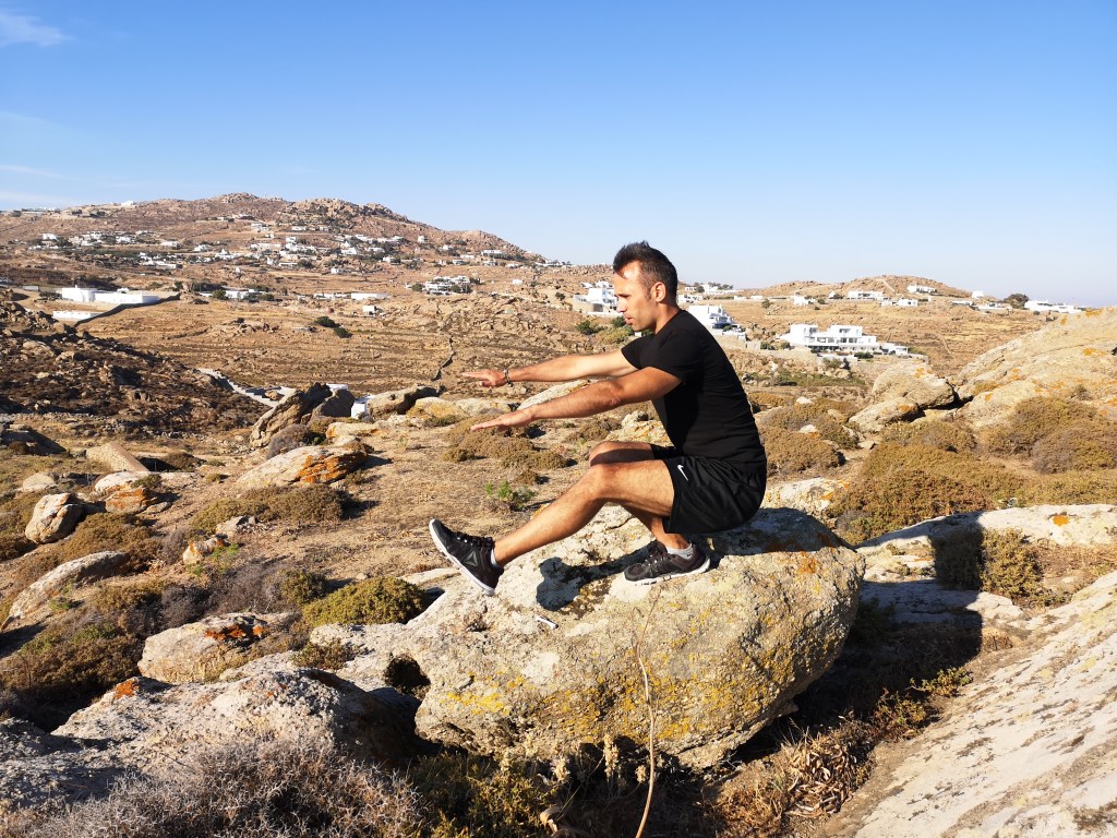 If you are a fitness junky and a nature lover then this is for you. Our no-equipment strength training uses the weight of your body to provide a powerful workout at the amazing rocky sceneries of Mykonos. This rural outdoor training will help you keep up with your fitness goals, while you experience an adventure at the wild rocky Mykonian environment. Running, jumping and free style climbing around and on stones and rocks wil be part of the workout, which will focus mainly on bodyweight routines to get you pumped up.