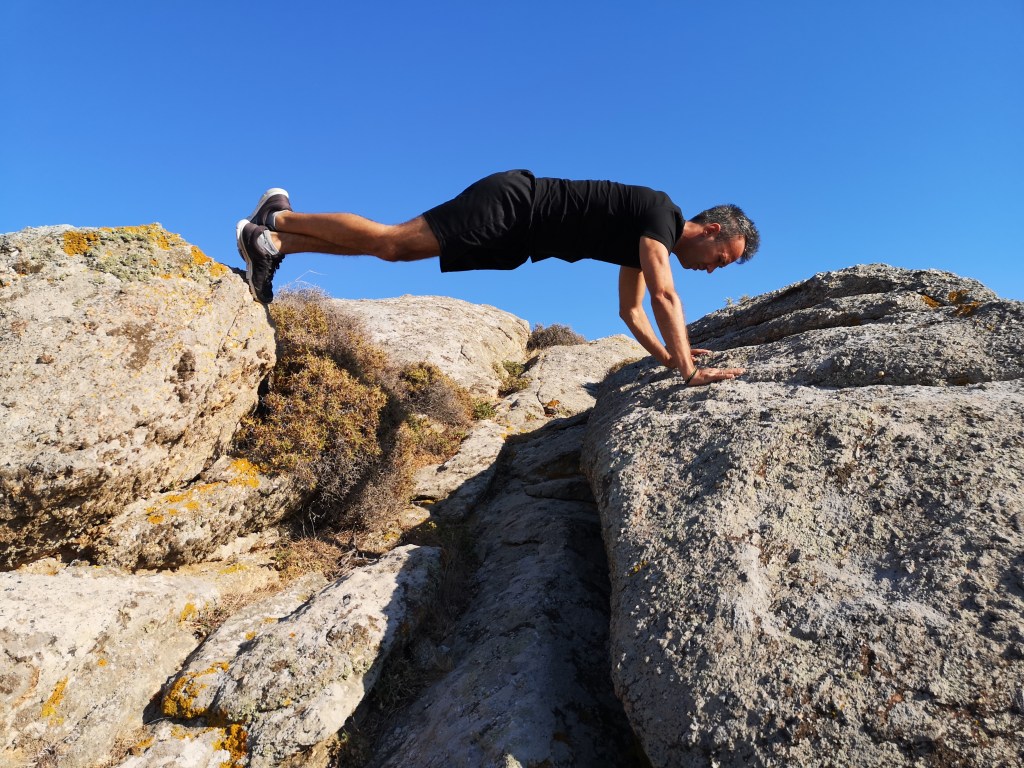Working out using your own bodyweight is one of the most powerful workouts you could have. Doing this type of workout outdoors among the rocky formations of Mykonos, does not only connect you with the island’s wild nature, but it also makes it a lot more fun and challenging.